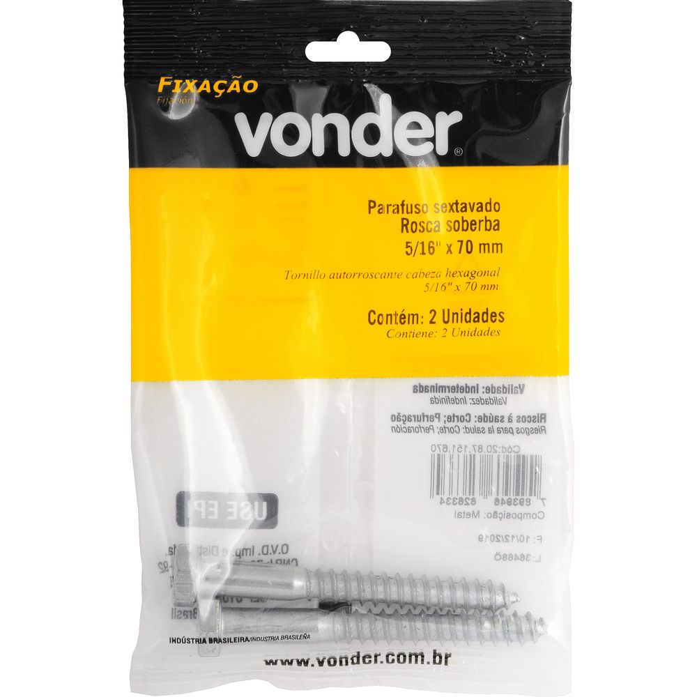 1 Cartela com 2 parafusos sextavados rosca soberba