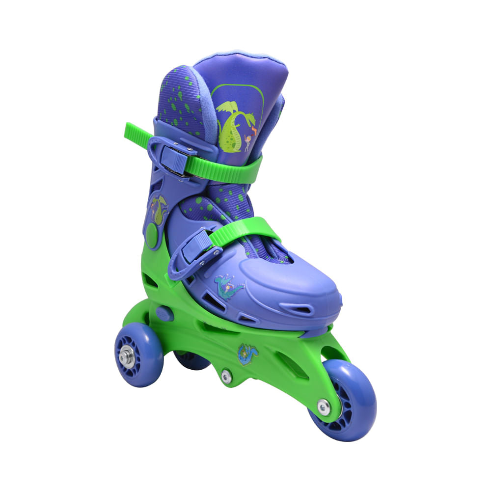 A diversão da criançada é mais que garantida com o Patins 2 em 1 Triline Dragão. Super divertido, colorido e confortável, o patins possui estrutura reforçada, bota e fivela ajustável, travas seguras e freio traseiro nos dois pés.