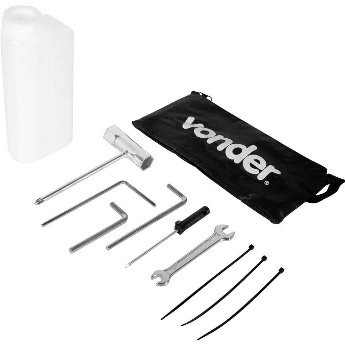 1 Perfurador de solo. Acompanha: 1 kit de ferramentas para manutenção (1 chave de fenda, 1 chave fixa, 1 chave combinada para vela x ponta phillips e 3 chaves allen) e 1 reservatório para mistura da gasolina e do óleo 2 tempos.