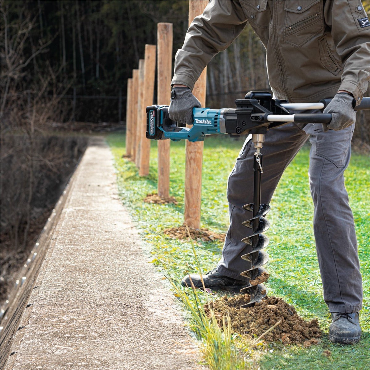 A bateria de íon de lítio 40Vmax XGT e o motor BL fornecem alta potência e excelente desempenho Botão principal de liga desliga com função de desligamento automático Velocidade variável com 2 velocidades (0-400 e 0-1.500 RPM) para maior versatilidade de perfuração Sistema de embreagem embutida que desengata automaticamente as engrenagens se a broca prender O adaptador de broca helicoidal permite o uso de outros tipos de brocas existentes no mercado A Tecnologia de Proteção Extrema (XPT) foi projetada para melhorar a resistência à poeira e à água para operação em condições adversas A Tecnologia de torque automático (ADT) ajusta a velocidade e o torque durante a operação para um desempenho ideal Luzes LED duplas que iluminam a área de trabalho A ferramenta inclui uma barra lateral que recebe a força de reação e uma alça auxiliar que ajuda o usuário a fazer furos no solo mais facilmente Zero emissões e manutenção reduzida