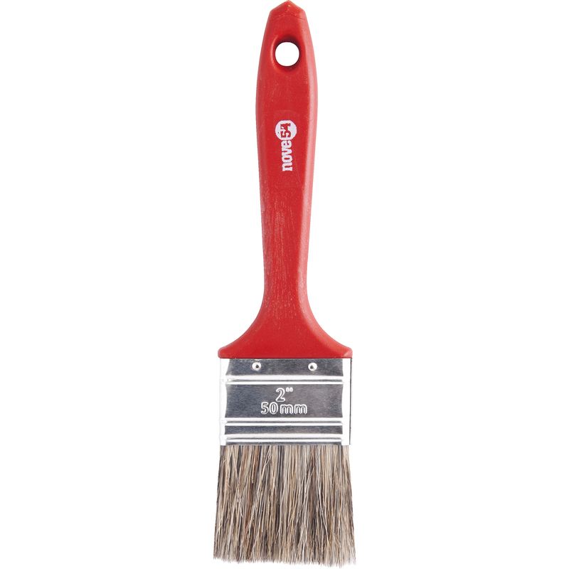 Largura do pincel: 2" - 50 mm Material das cerdas do pincel: Natural Cor das cerdas do pincel : Gris Material do cabo do pincel: Plástico Cor do cabo do pincel: Vermelho