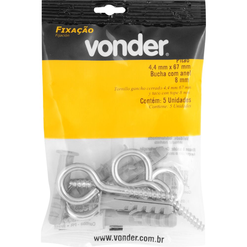 Possui acabamento zincado que aumenta a proteção contra oxidação/corrosão e acompanha bucha plástica com anel.