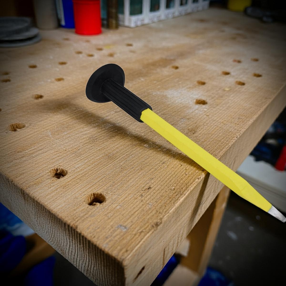 Fabricado em aço carbono de alta qualidade, oferece durabilidade, rigidez e resistência ao desgaste, enquanto o acabamento em tinta eletrostática protege contra oxidação e corrosão, garantindo longa vida útil mesmo em ambientes exigentes. A empunhadura emborrachada proporciona firmeza e conforto ao manusear a ferramenta, reduzindo vibrações e aumentando o controle em cada golpe, tornando o trabalho mais seguro e eficiente.
