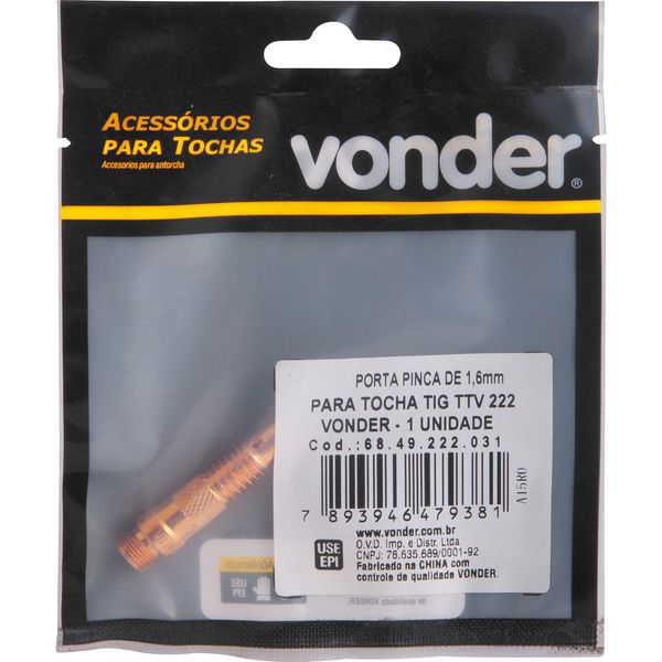 Porta-pinça de 1,6 mm, para tocha TIG TTV 222 VONDERAplicações e dicas de uso: