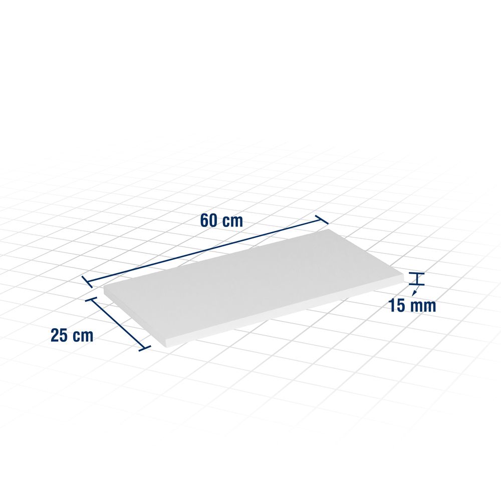 Dimensões: L x P x E (60 cm x 25 cm x 15 mm)Capacidade de carga (kgf): 25 kgf