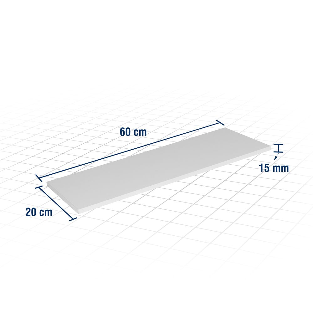 Dimensões: L x P x E (60 cm x 20 cm x 15 mm)Capacidade de carga (kgf): 25 kgf