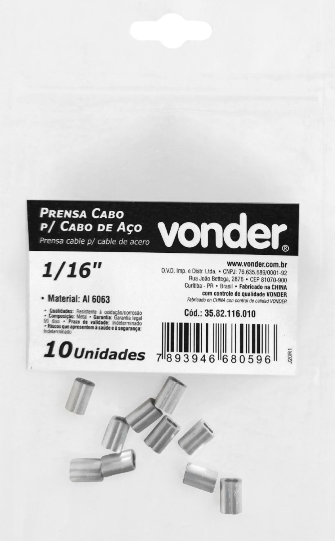Indicado para confecção de lingas de cabos de aço, substitui os grampos em configurações que dispensam desmontagens. É recomendado o uso de alicate especial para prensagem.