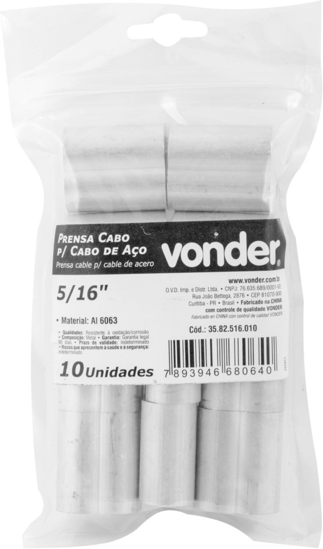 Indicado para confecção de lingas de cabos de aço, substitui os grampos em configurações que dispensam desmontagens. É recomendado o uso de alicate especial para prensagem.