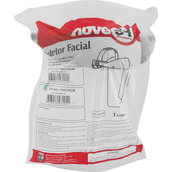 Número do Certificado de Aprovação - CA 15019 Cor do protetor facial: Incolor Medida do protetor facial: 210 mm Material do protetor facial: Policarbonato