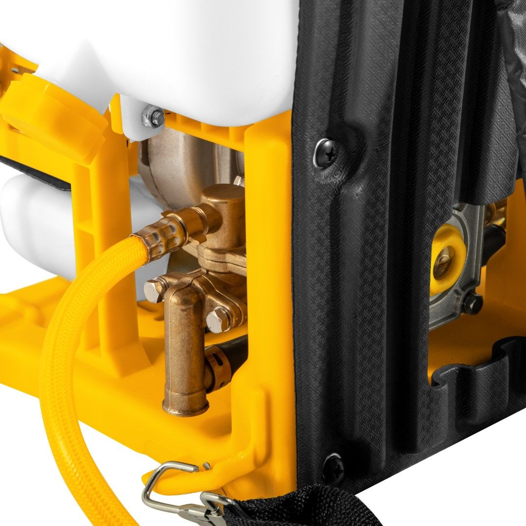 Possui alça ergonômica regulável, oferecendo maior conforto e ergonomia ao operador. Conta com válvula de ajuste de pressão, permitindo que o equipamento seja regulado de acordo com a necessidade de cada situação de uso/ aplicação.