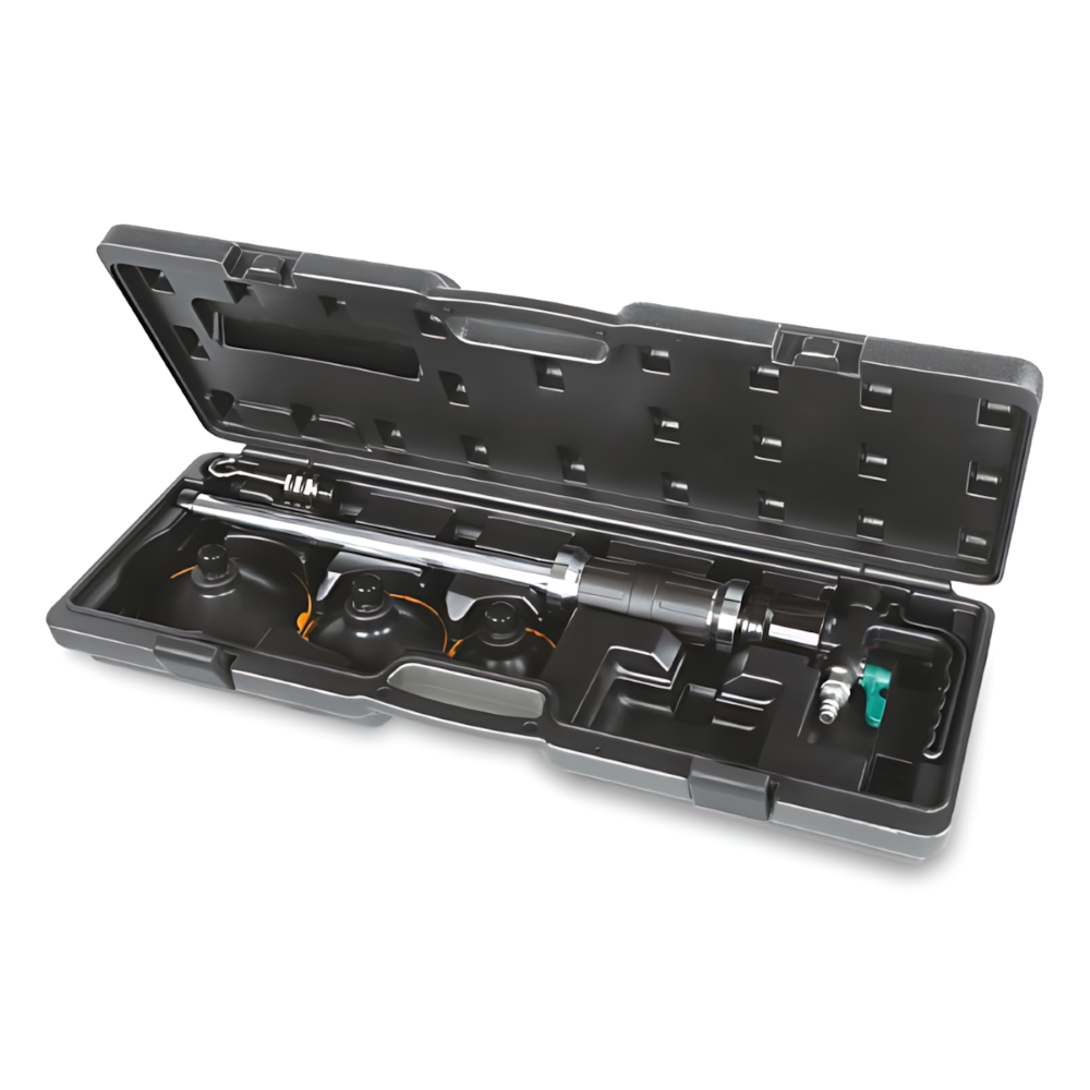 Diferenciais: A Repuxadeira Pneumática 1366/K5 da Beta Tools oferece uma solução versátil para reparos de funilaria. Com seu martelo dinâmico de 1,1 kg e as ventosas de forte aderência, ela garante eficiência e precisão nos reparos. O kit completo, incluindo diferentes tamanhos de ventosas e acessórios, torna esta ferramenta uma escolha abrangente para profissionais e entusiastas de funilaria automotiva.