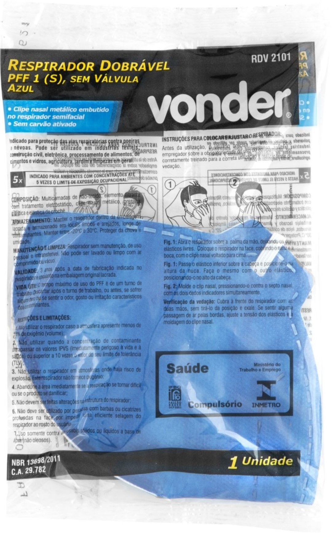 Indicado para proteção das vias respiratórias contra poeiras e névoas não superior a 5 (cinco) vezes o limite de exposição ocupacional deste particulado (penetração máxima através do filtro de 20%). Pode ser utilizado em indústrias têxteis, construção civil, eletrônica, processamento de alimentos, de cimentos e vidros, agricultura, jardim e limpezas em geral.