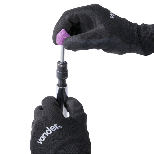 Conteúdo da embalagem 1 Retificadeira. Acompanha: 2 chaves, 1 pinça 1/4", 1 pinça 6 mm e 1 pinça 1/8". Aplicações e dicas de uso Indicada para operações de desbaste e acabamento com o auxílio de pontas montadas. Manter a ferramenta constantemente lubrificada e utilizar sempre o regulador de pressão e o lubrificador de linha com óleo pneumático. Destaques e diferenciais Possui corpo em alumínio com cobertura emborrachada, proporcionando maior resistência e conforto durante o manuseio