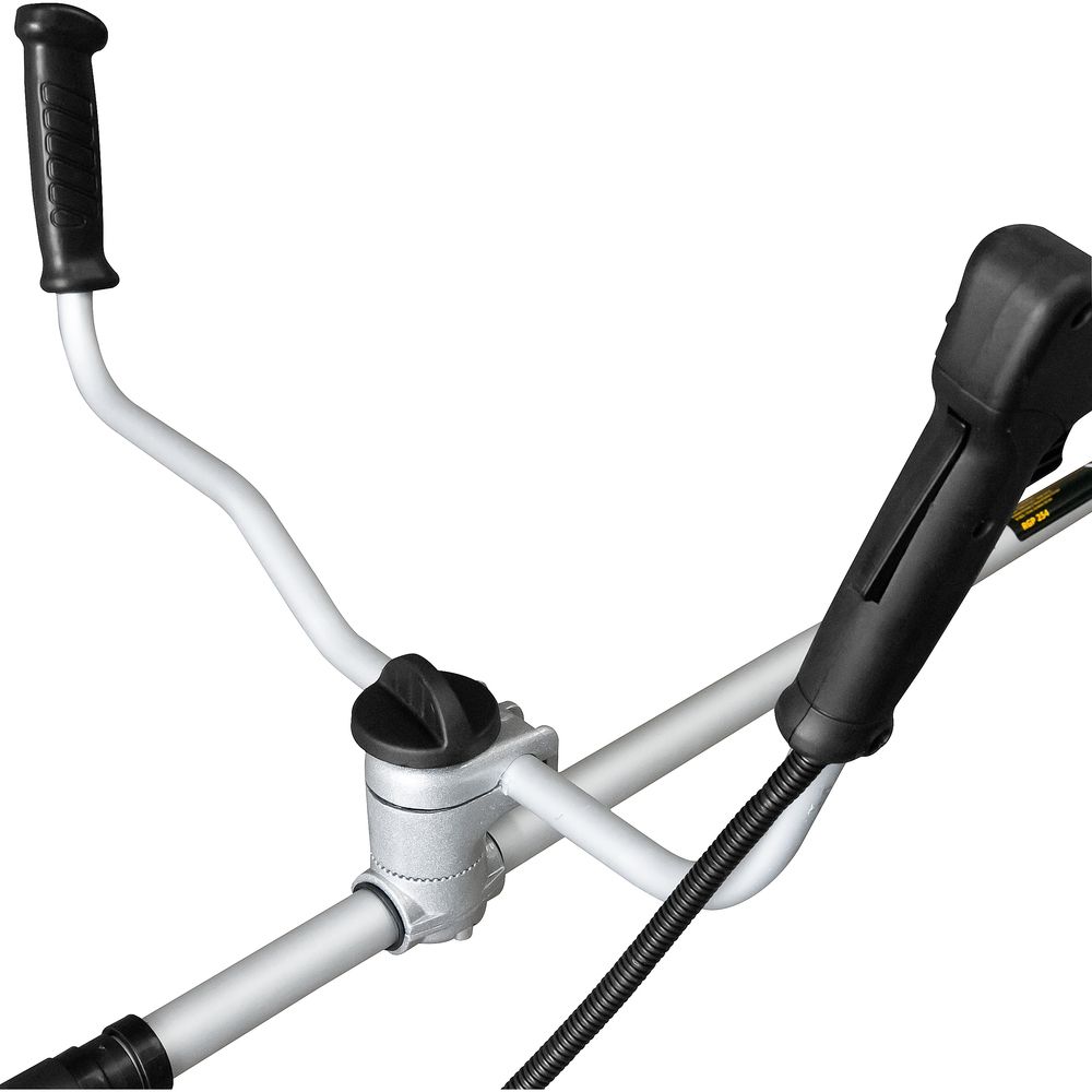 Possui guidão regulável e cinto com alça dupla almofadada, que confere maior conforto ao operador e melhor distribuição do peso do equipamento. Conta ainda com sistema de emergência caso seja necessário soltar a roçadeira, além de frasco graduado que facilita a medição/mistura de gasolina e óleo 2 tempos. Equipamento pronto para uso, pois já acompanha lâmina três pontas e carretel com fio de nylon. Possui sistema de partida de fácil acionamento (Easy-start), que deixa o acionamento do retrátil mais suave na hora de dar a partida.