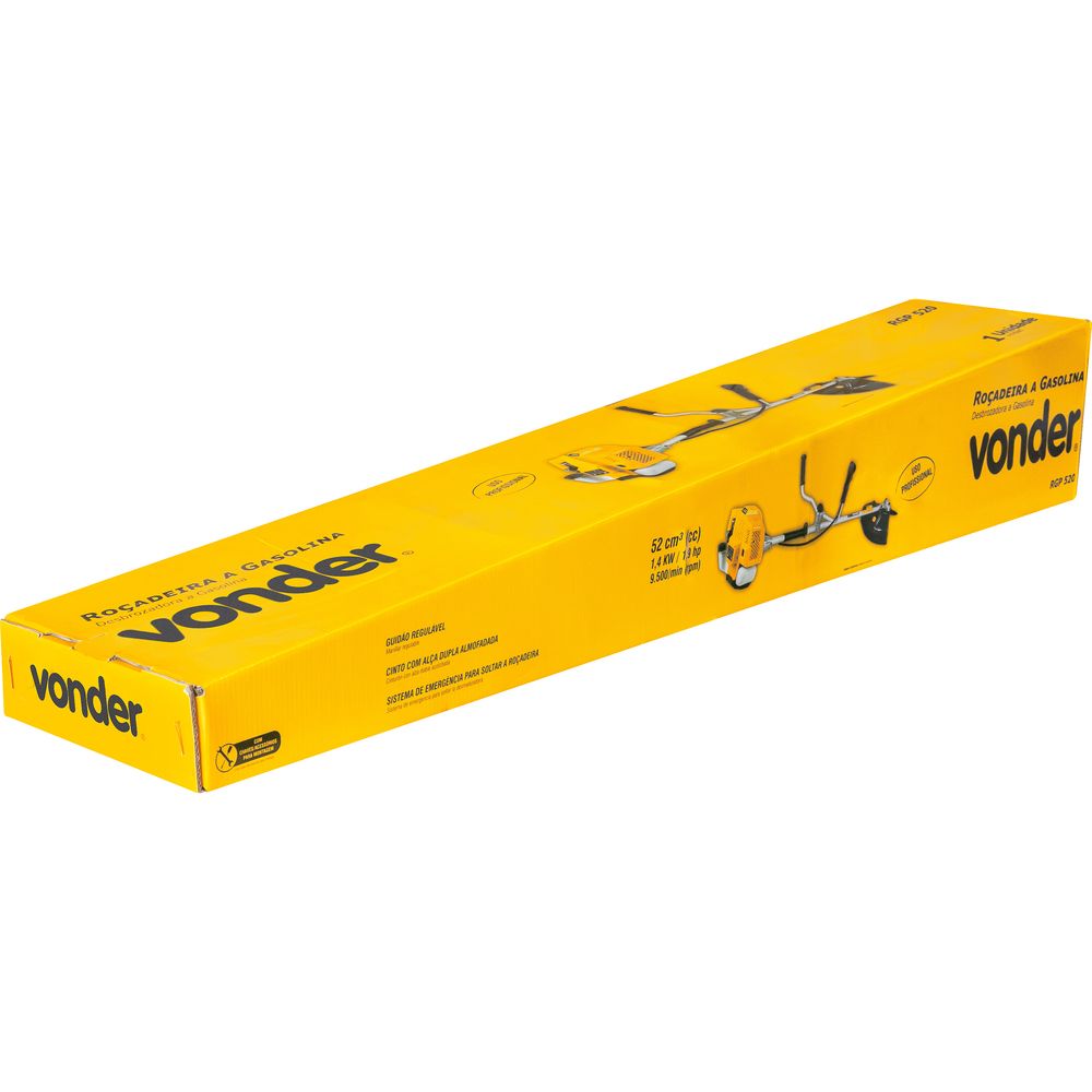 1 Roçadeira a gasolina. Acompanha: 1 lâmina 3 pontas, 1 carretel com fio de nylon, 1 cinto duplo com suporte, 1 frasco dosador e 1 kit com ferramentas para auxiliar na montagem e manutenção do equipamento.