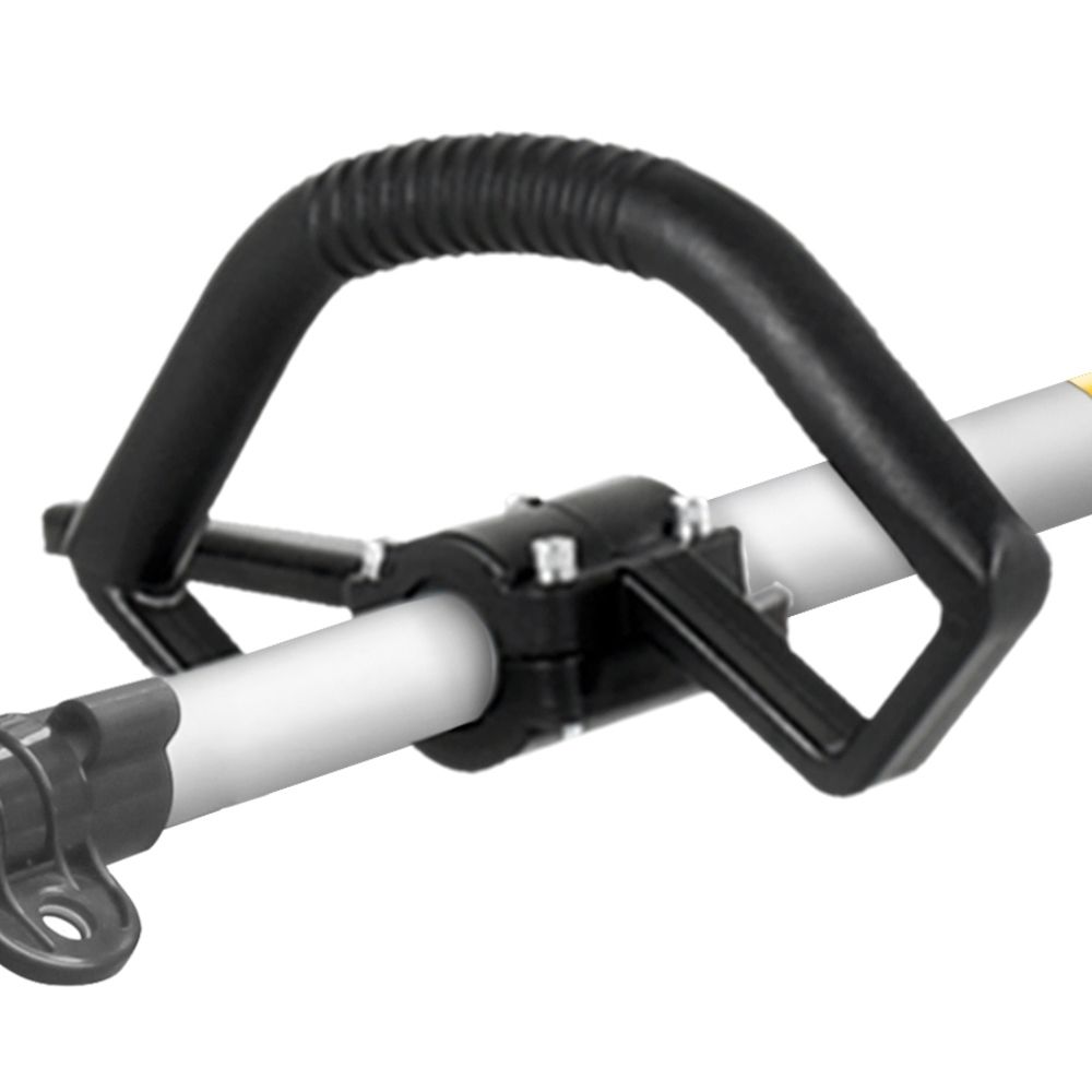 Possui guidão circular regulável e cinto com alça dupla almofadada, conferindo maior conforto ao operador e melhor distribuição do peso do equipamento. Conta ainda com sistema de emergência caso seja necessário soltar a roçadeira, além de frasco graduado que facilita a medição/mistura de gasolina e óleo 2 tempos. Equipamento pronto para uso, pois já acompanha lâmina três pontas e carretel com fio de nylon.