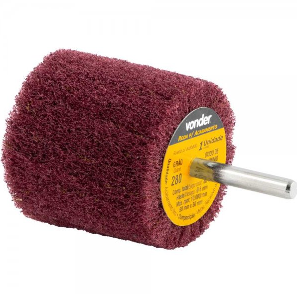 Indicada para acabamento de superfícies metálicas diversas, como aço, aço inoxidável, ferro, latão, cobre, alumínio. Use com retificadeira reta.