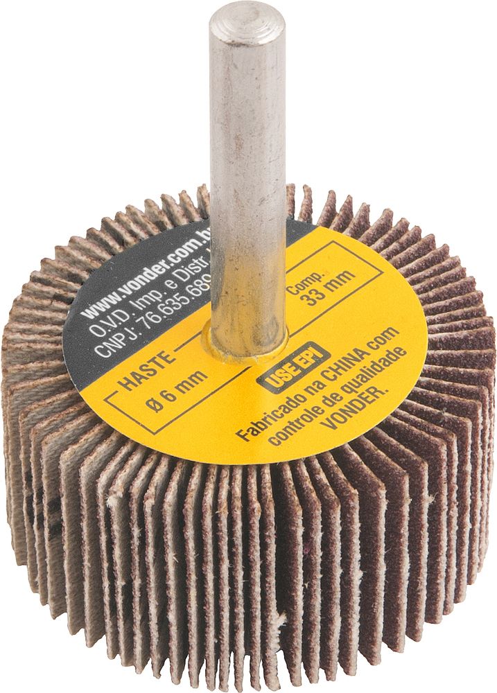 Indicada para lixamentos e acabamentos de superfícies planas, contornos e partes internas em aço, ferro, plástico, alumínio, entre outros. Adaptável em lixadeiras para tornos, furadeiras elétricas e chicotes em geral.Características Técnicas:
