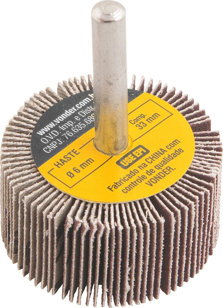Indicada para lixamentos e acabamentos de superfícies planas, contornos e partes internas em aço, ferro, plástico, alumínio, entre outros. Adaptável em lixadeiras para tornos, furadeiras elétricas e chicotes em geral.Características Técnicas: