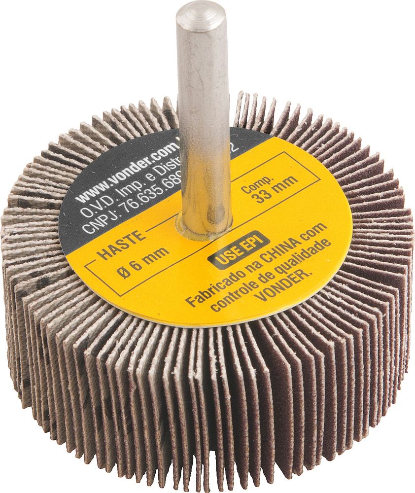 Indicada para lixamentos e acabamentos de superfícies planas, contornos e partes internas em aço, ferro, plástico, alumínio, entre outros. Adaptável em lixadeiras para tornos, furadeiras elétricas e chicotes em geral.Características Técnicas: