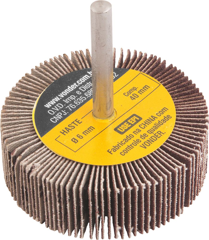 Indicada para lixamentos e acabamentos de superfícies planas, contornos e partes internas em aço, ferro, plástico, alumínio, entre outros. Adaptável em lixadeiras para tornos, furadeiras elétricas e chicotes em geral.Características Técnicas: