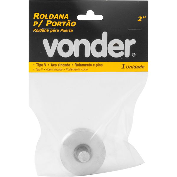 Roldana para portão 2", tipo V, aço zincado, com rolamento e pino, VONDERAplicações e dicas de uso: