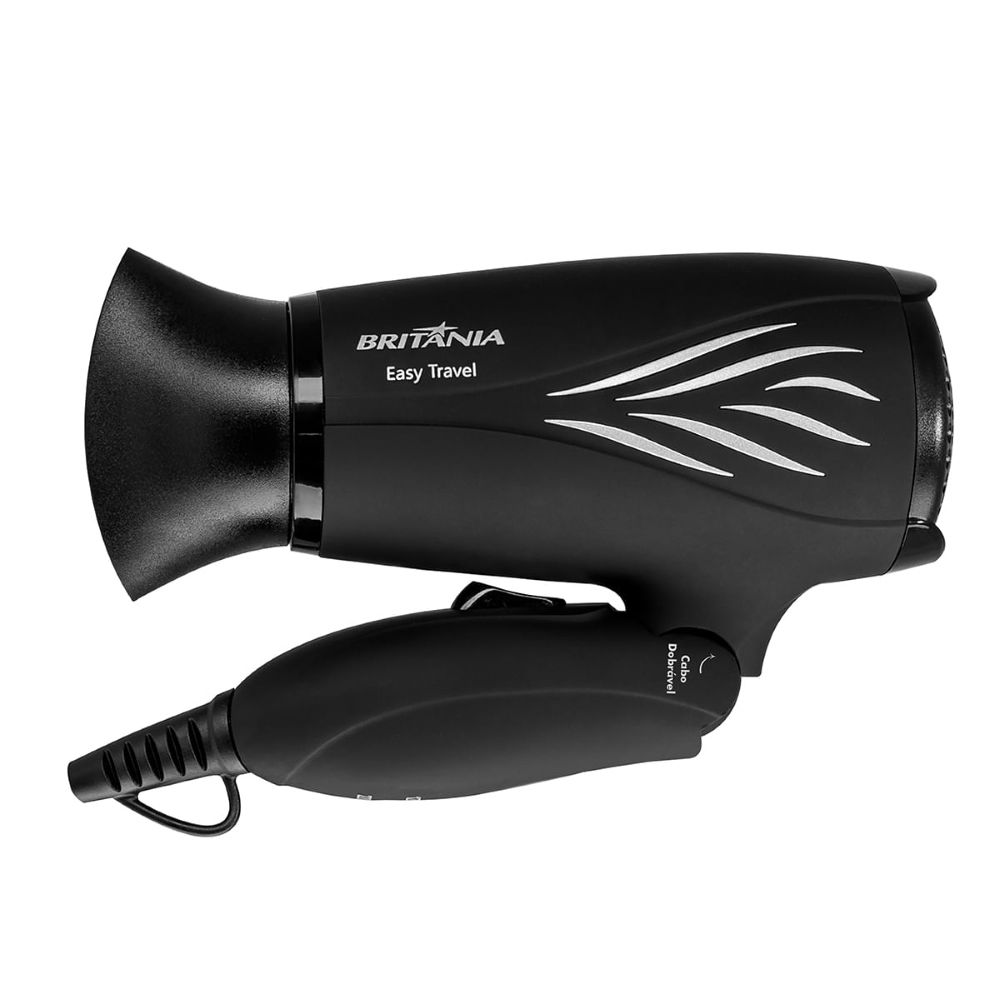 Conteúdo da embalagem: 1 Secador de Cabelos Easy Travel 1000W Britânia Com Cabo Dobrável e Bocal Concentrador Bivolt