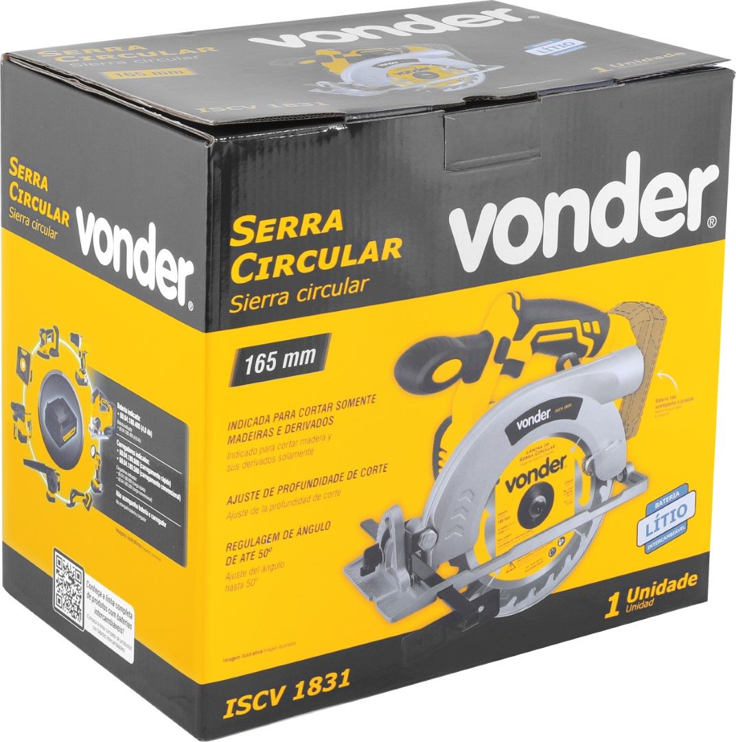 Este equipamento utiliza um modelo de bateria que pode ser intercambiável (não acompanha), ou seja, uma bateria que é compatível com outros modelos de ferramentas a bateria VONDER. Por isso, em sua próxima compra de ferramenta a bateria VONDER, procure por um modelo que comece com a referência “I”, ou que esteja identificado com o selo “Bateria Intercambiável VONDER”. Desta forma, você garante modelos mais econômicos, sem a necessidade de aquisição de novas baterias e carregadores para uso em seu equipamento. Possui ajuste de profundidade de corte e regulagem de ângulo de até 50°.