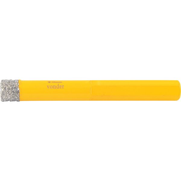 Possui corpo reforçado em aço, ponta com revestimento diamantado e haste sextavada