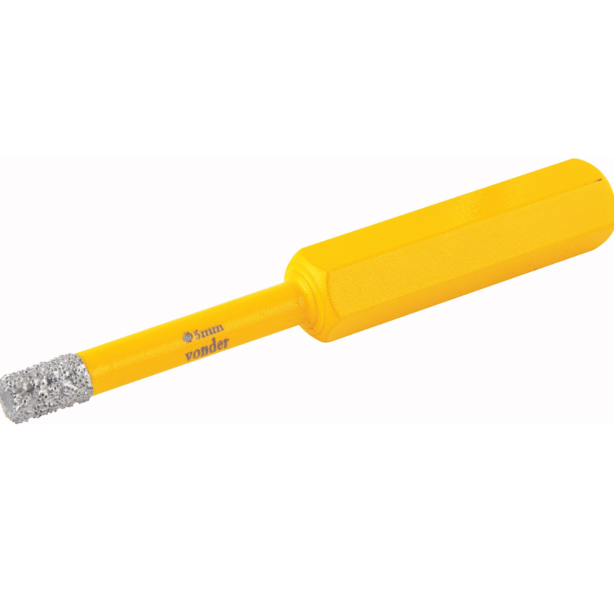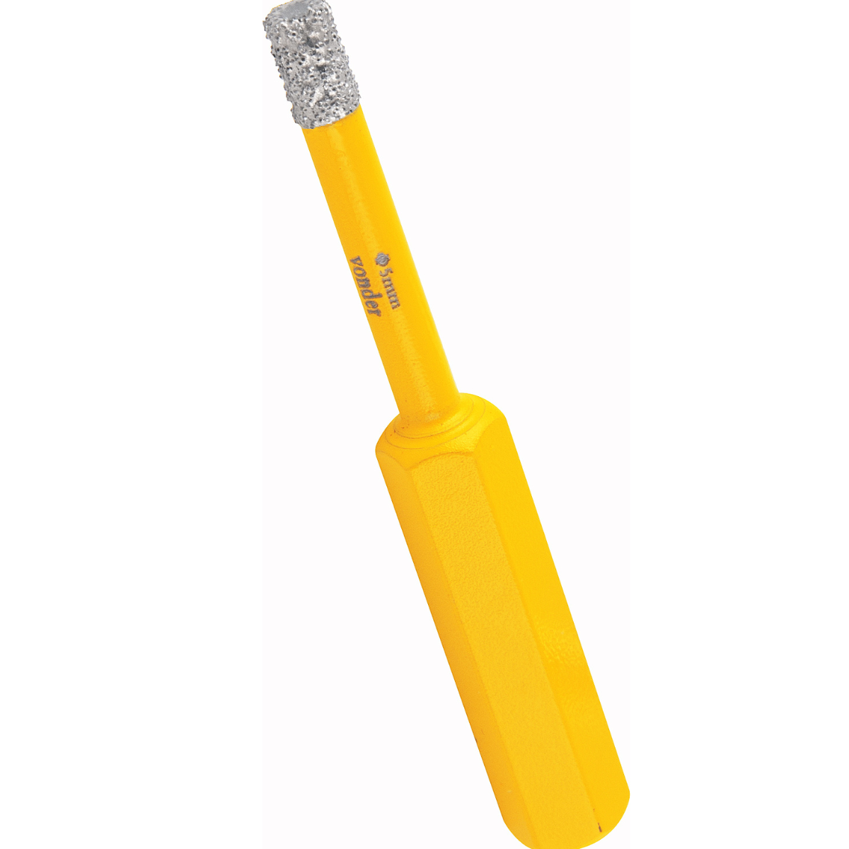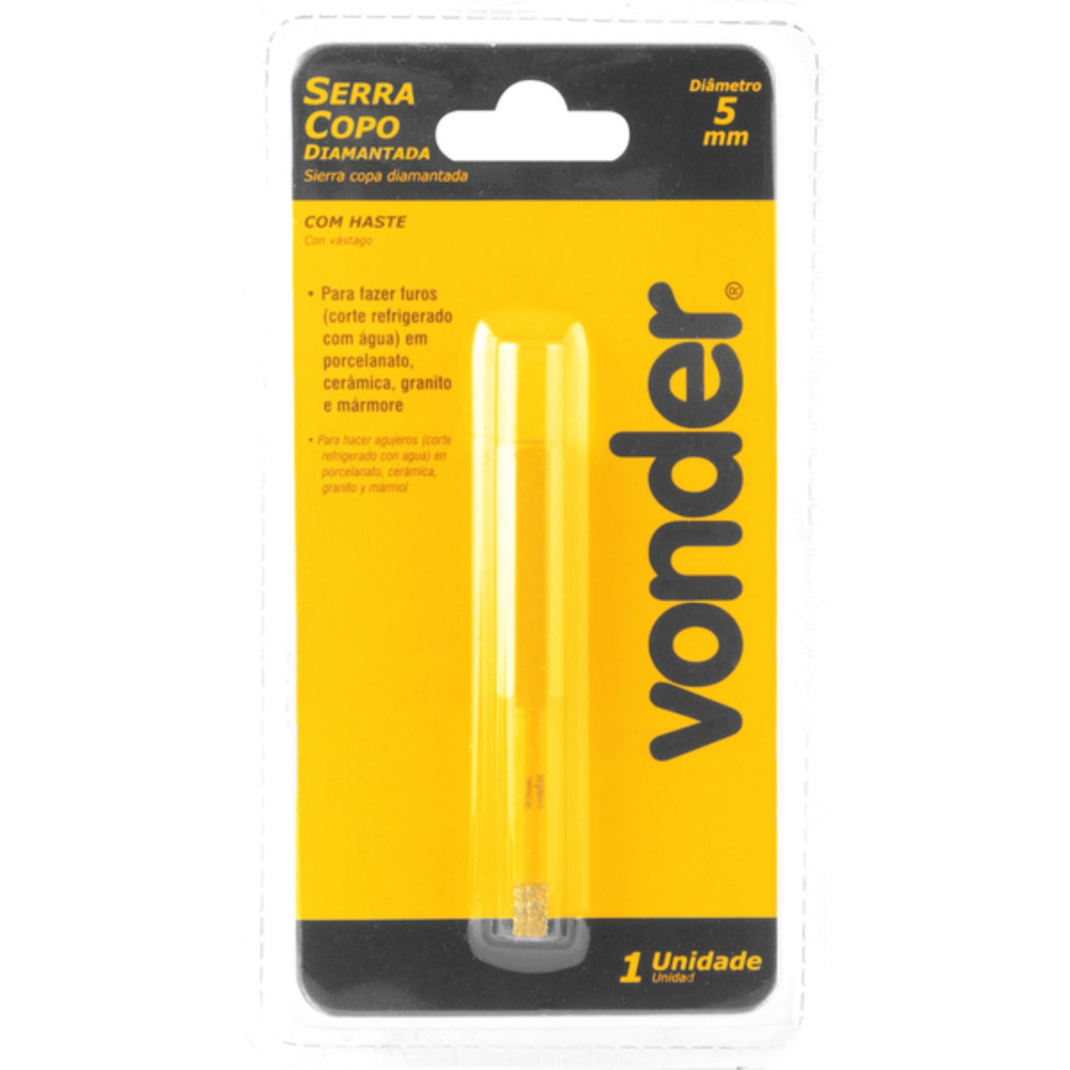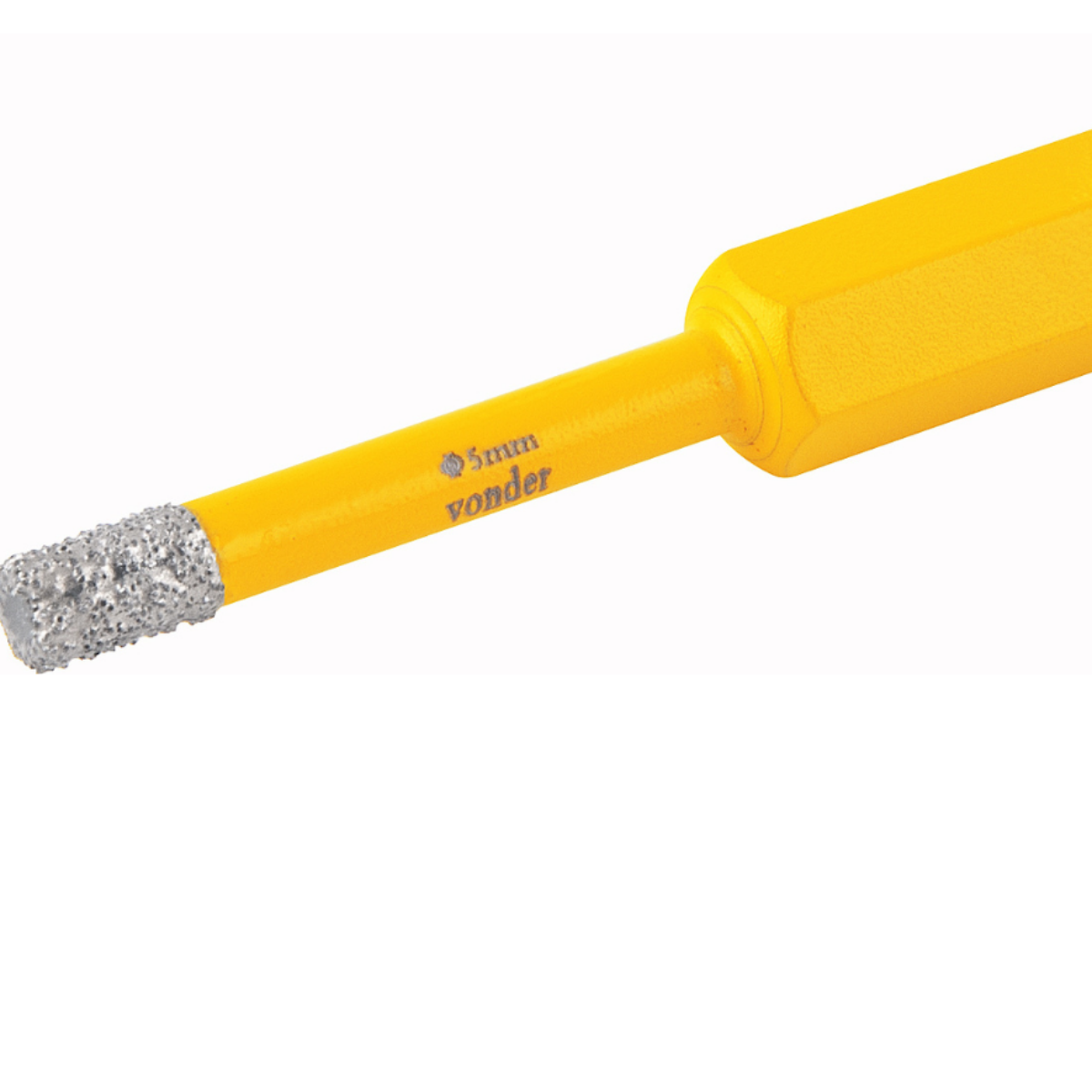Possui corpo reforçado em aço, ponta com revestimento diamantado e haste sextavada