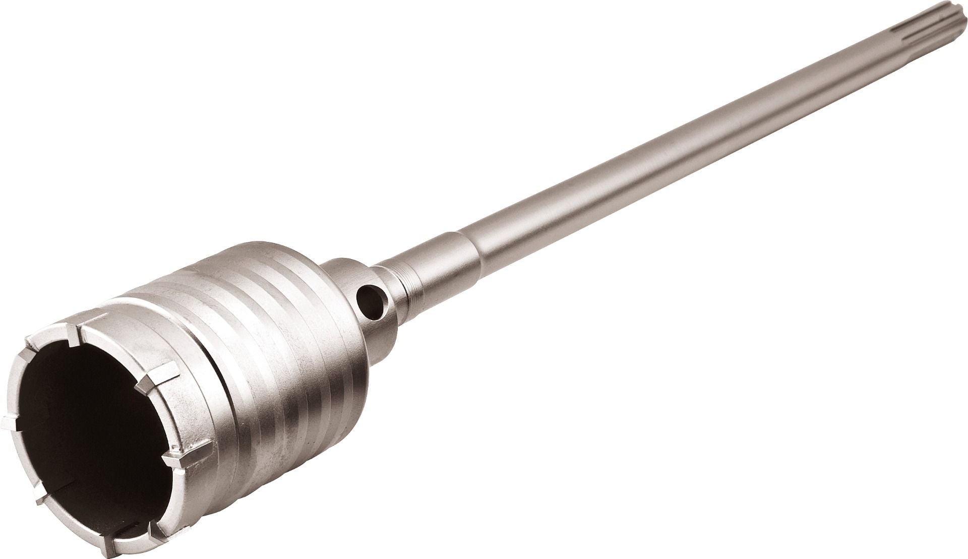 Possui corpo reforçado em aço, aresta de corte com dentes de metal duro/vídea. Facilita a realização de furos de grandes diâmetros em tempo reduzido. Encaixe SDS MAX.