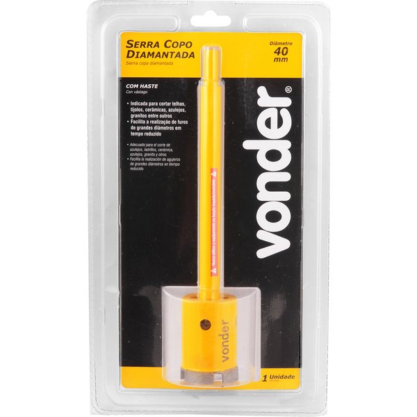 Serra copo diamantada 40mm com haste para alvenaria Vonder
