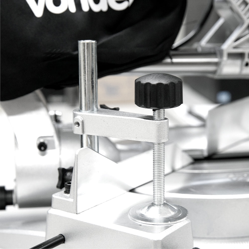 Possui base giratória para cortes em ângulo de 45° para ambos os lados, braço (cabeça de corte) com botão para regulagem de inclinação de até 45° para a esquerda, cabo com revestimento emborrachado, eixo com flange adaptadora que permite a utilização de lâminas com furos de 20 mm ou 30 mm e protetor de lâmina. Possui ainda morsa e apoios laterais que facilitam o corte em peças de maior comprimento. Equipamento multifuncional, pois pode cortar madeira e alumínio
