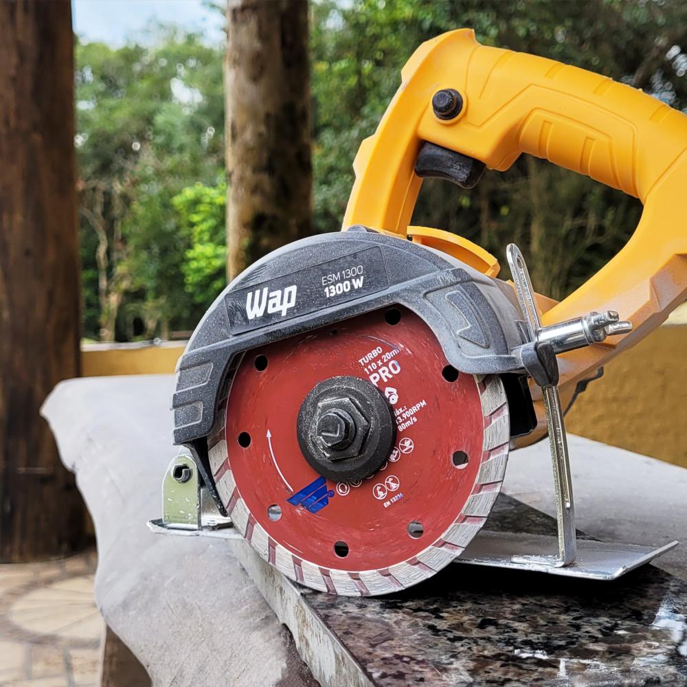 Na hora de realizar cortes em diferentes tipos de pedras ornamentais, tijolos, telhas, pisos, cerâmica e blocos de concreto, a solução está na Serra Mármore WAP ESM1300. Esta ferramenta da linha WAP Ferramentas opera com um motor de 1300W, que oferece toda a potência para realizar cortes retos com precisão e eficiência.