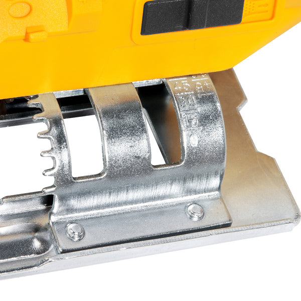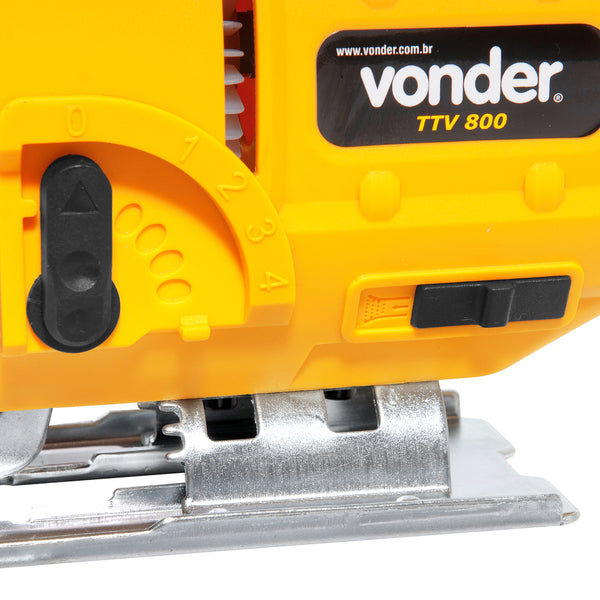 Potência (W) 800 Capacidade de corte em aço 90º: 10 mm Capacidade de corte em alumínio 90º: 12 mm Capacidade de corte em madeira 90°: 80 mm Tipo de encaixe da lâmina da serra tico-tico: Tipo "M" e tipo "T" Ângulo de inclinação da base: 45º Tipo de velocidade: Variável Número de golpes por minuto: 800 gpm - 3000 gpm Segue norma: 6:1 Tensão (V): 220 V~ Frequência (Hz): 60 Hz Prazo de garantia: 1 ano Peso aproximado: 2,8 kg