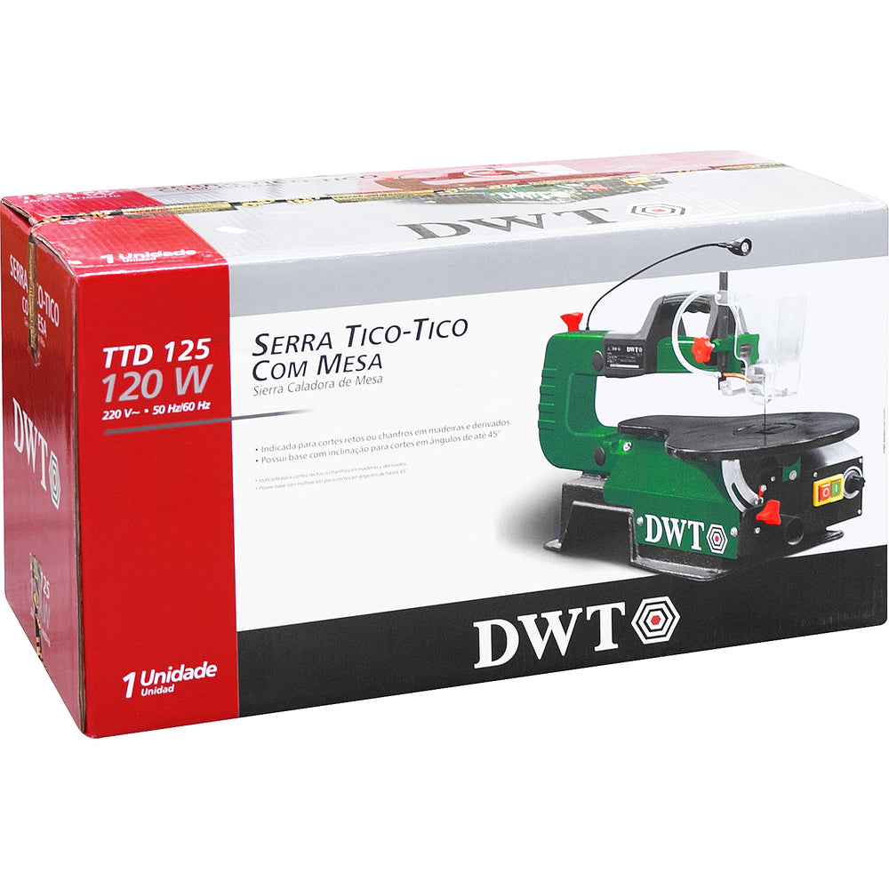 1 Serra tico-tico com mesa. Acompanha: 1 punho auxiliar, 1 chave e 1 lâmina de 3 mm x 133 mm com 59 dentes