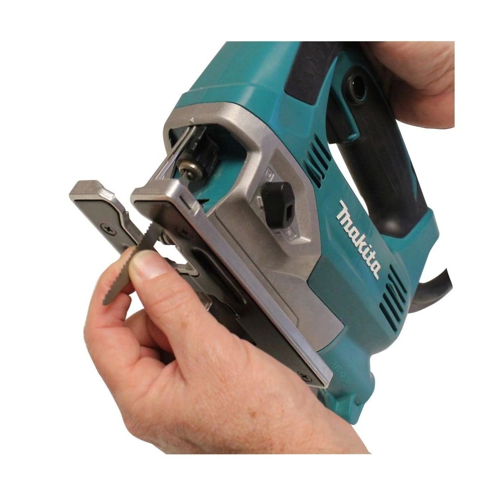 A Serra Tico-Tico JV0600K da Makita é a ferramenta ideal para marceneiros profissionais. Com potência de 650W e velocidade variável de 500 a 3.100 golpes por minuto, ela permite realizar uma ampla variedade de cortes em madeira, metal e outros materiais.