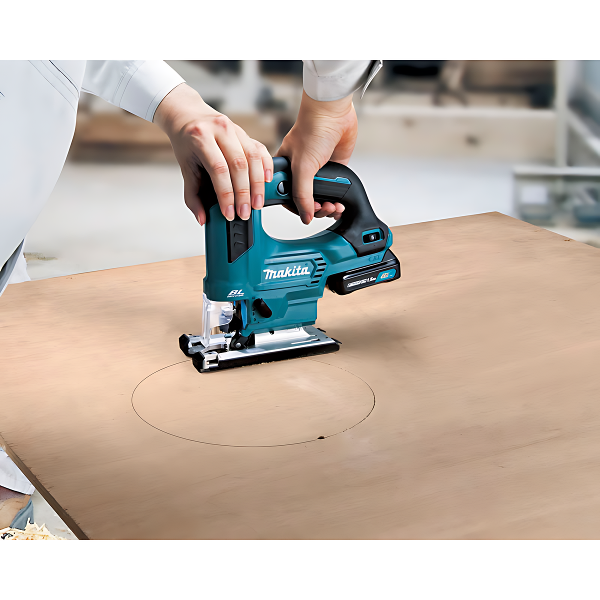 A Serra Tico-tico JV103DSAJ é uma ferramenta versátil projetada com a tecnologia CXT, oferecendo maior desempenho e autonomia com o motor BL. A velocidade variável, o freio instantâneo e a partida suave são recursos adicionais. A serra é adaptável a coletor/aspirador de pó e inclui corte orbital.