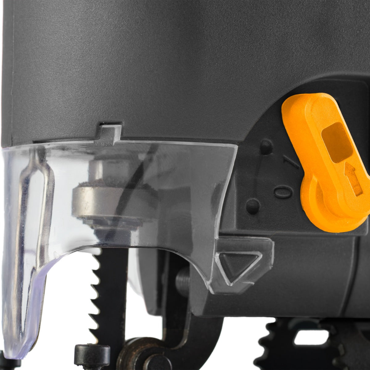 A troca de lâminas é facilitada pelo sistema sem chaves, e o ajuste pendular em 3 posições possibilita cortes mais rápidos. A base ajustável permite cortes angulares precisos, enquanto a pega ergonômica e emborrachada, junto com o botão trava, proporcionam conforto e praticidade em trabalhos contínuos. O bocal de aspiração, compatível com aspiradores de pó, mantém o ambiente limpo e organizado, ideal para um trabalho profissional.