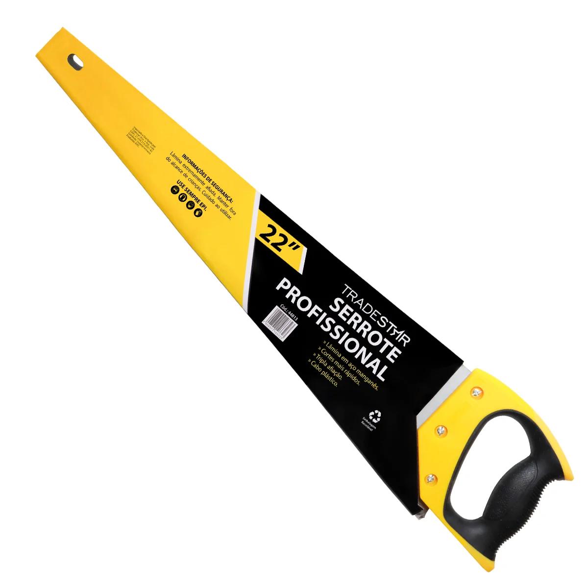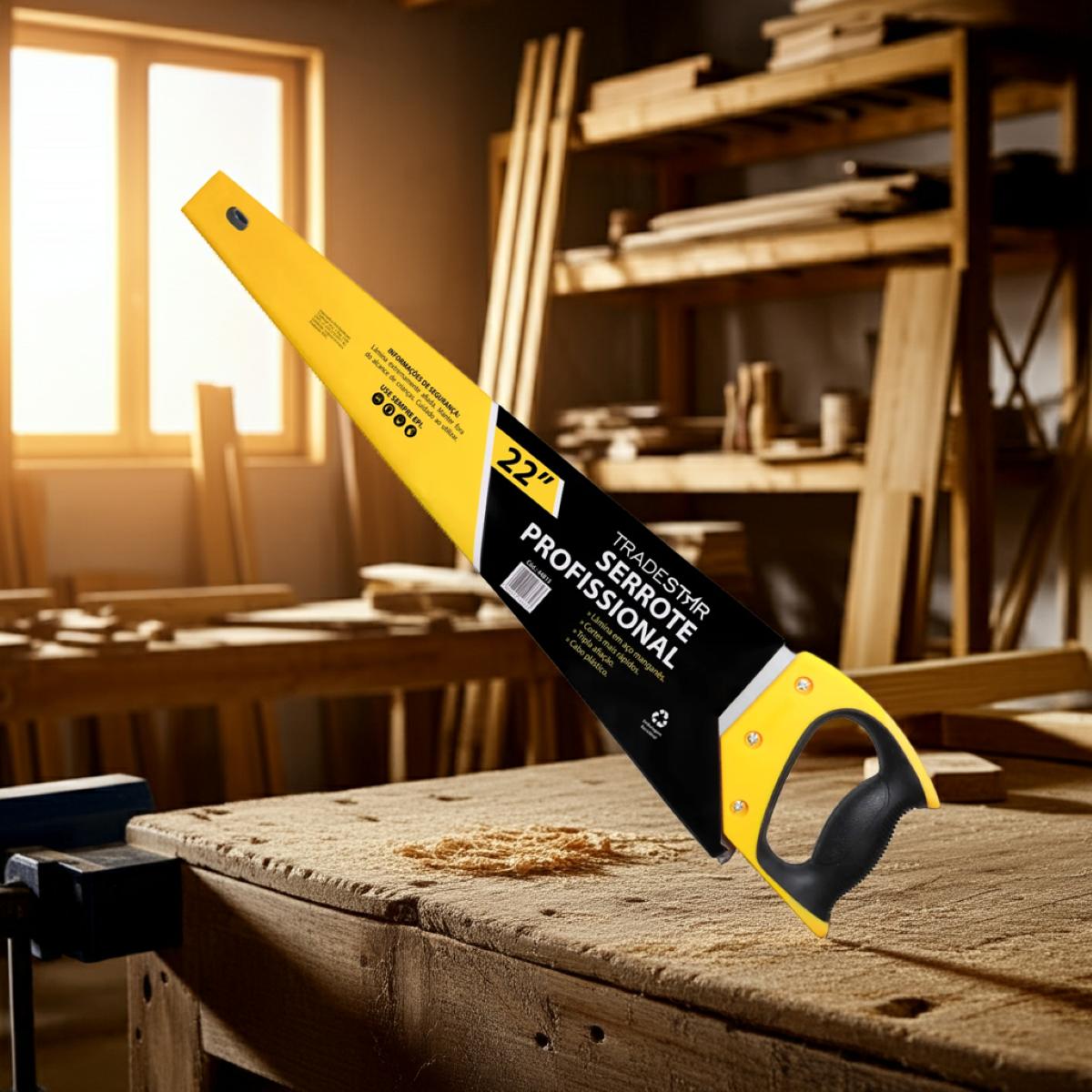 O Serrote Tradestar 22" com Cabo Plástico é projetado para oferecer cortes rápidos, limpos e precisos em madeira seca, MDF e compensado. Sua lâmina em aço manganês de alta resistência, combinada com tripla afiação, proporciona excelente desempenho, reduzindo o esforço do operador e garantindo maior durabilidade mesmo em usos intensivos.