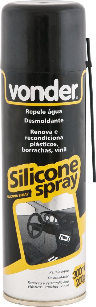 Conteúdo da embalagem 1 Silicone em spray Aplicações e dicas de uso Indicado para painéis de veículos, couro, para-choque. Silicone finalizador, repele água, renova e recondiciona plásticos, borrachas e vinil, podendo ser usado também como desmoldante.