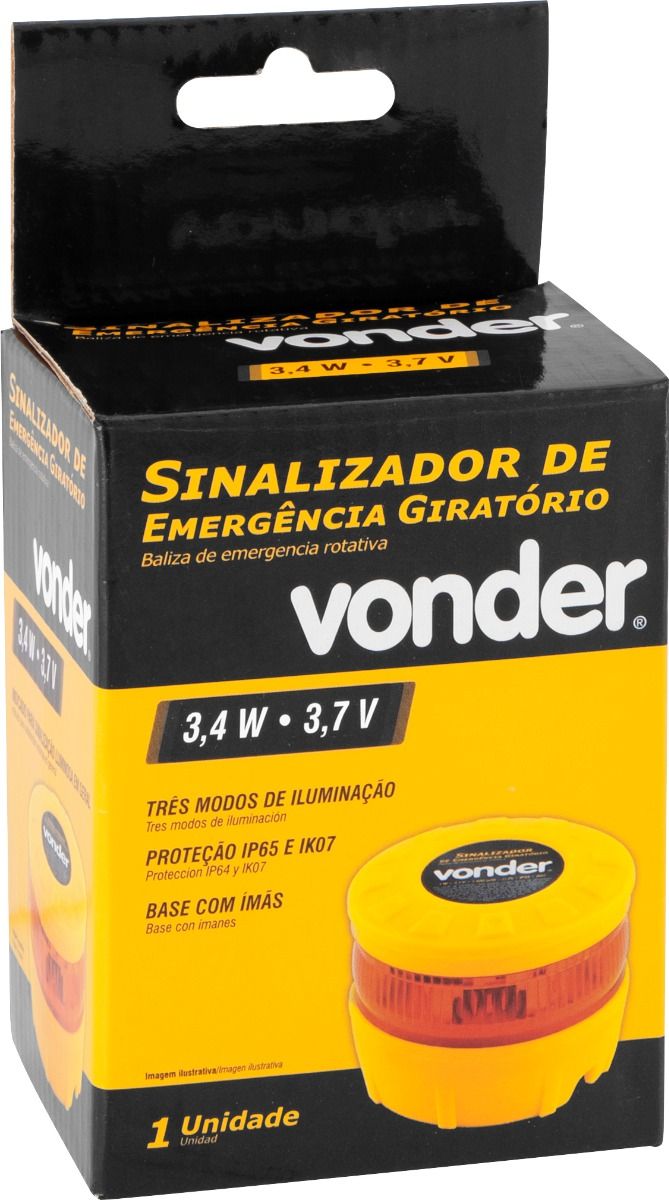 Possui base com dois ímãs, possibilitando a fixação em estruturas metálicas. Conta ainda com três modos de iluminação (giratório, piscando e contínuo), ajustando-se a diversas necessidades. Proteção IP65 e IK07.