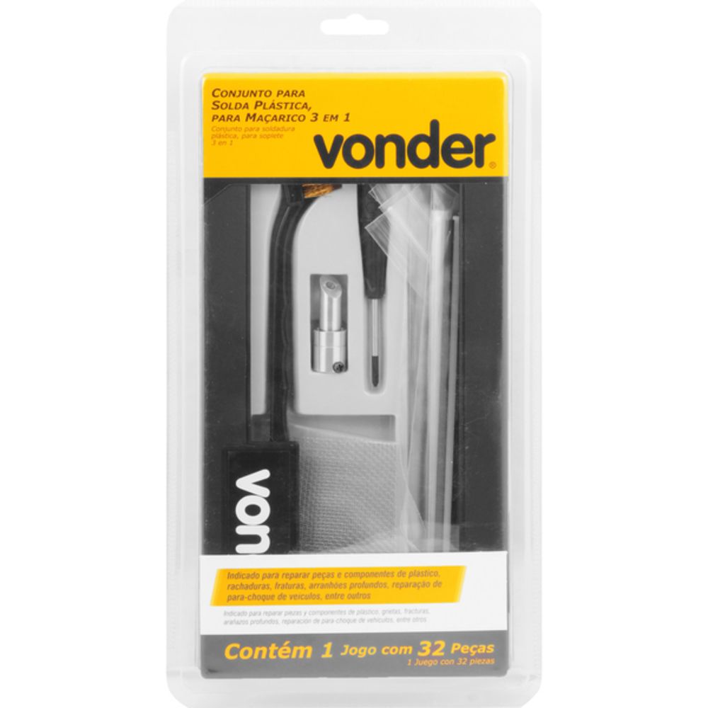 Utilizado com o Maçarico Manual Portátil 3 em 1 VONDER, código 72.99.301.000. Indicado para reparar peças e componentes de plástico, rachaduras, fraturas, arranhões profundos, reparação de para-choque de veículos, entre outros.