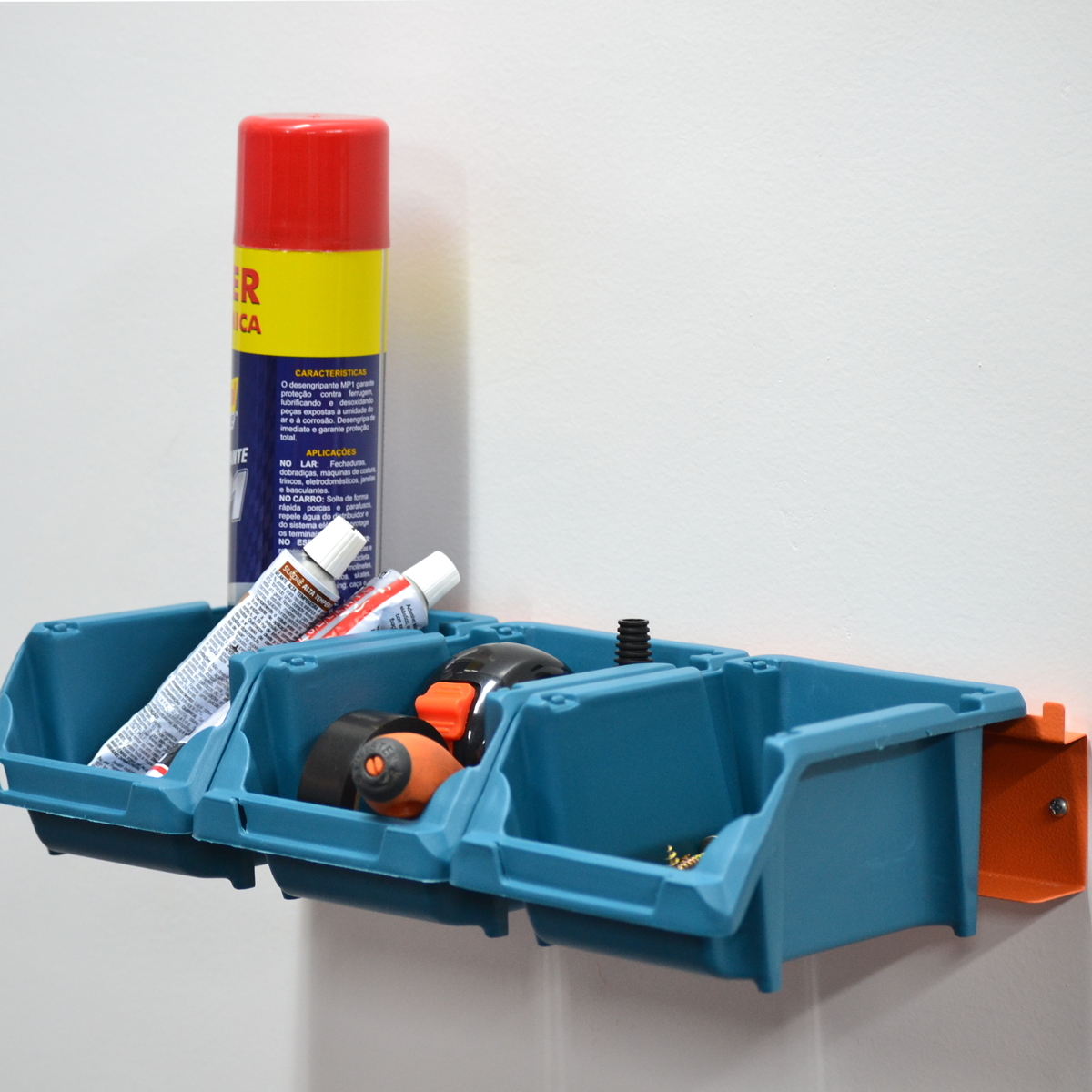 Conteúdo da embalagem: 1 Peça Suporte com 3 Gavetas nº 3 Azul para Parede E Painel Presto
