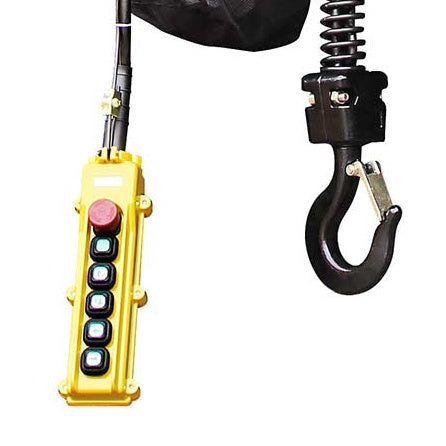 A Talha Elétrica de Corrente oferece praticidade, qualidade e segurança para otimizar suas operações. Seu painel de comando é de fácil manutenção, operando em extra baixa tensão de 24V. A botoeira suspensa robusta possui seletor de velocidade, permitindo o desligamento do motor em emergências e garantindo proteção. O interruptor de final de curso limita o alcance superior da elevação, proporcionando maior controle. O corpo compacto em alumínio selado oferece durabilidade e resistência, e a alça metálica de reforço aumenta a vida útil do equipamento. A segurança é garantida pelo dispositivo de verificação de sobrecarga por embreagem de fricção e pelo sistema de freio eletromagnético de corrente contínua. As conexões diretas tipo engate rápido facilitam a operação.