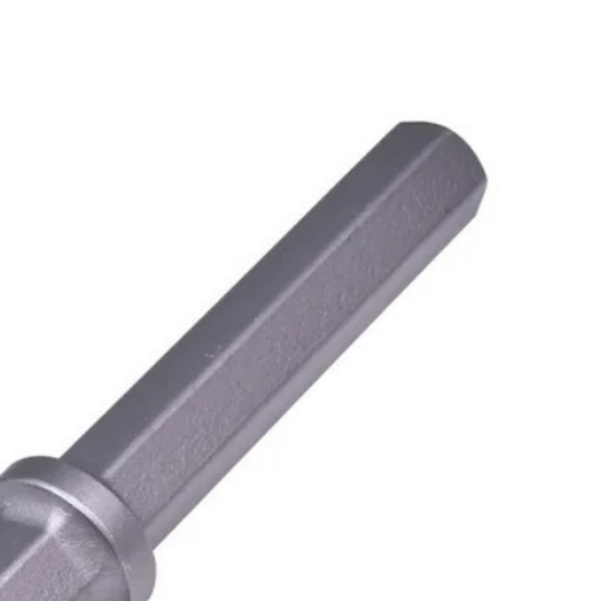 Seu encaixe sextavado de 28,6 mm assegura compatibilidade com marteletes e equipamentos de alto impacto, oferecendo fixação firme e segura durante o uso contínuo. Além disso, o anel de retenção contribui para maior estabilidade e durabilidade da peça, tornando a talhadeira ainda mais confiável para uso intenso no canteiro de obras.