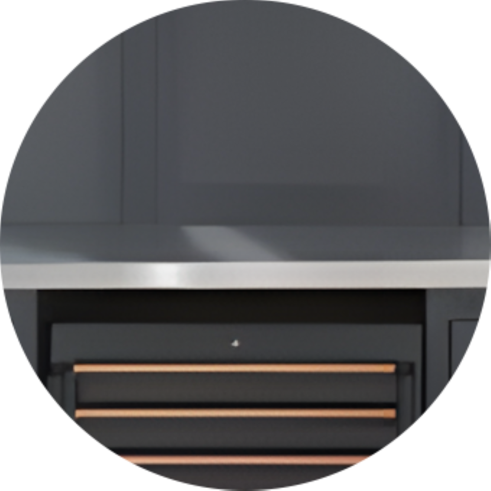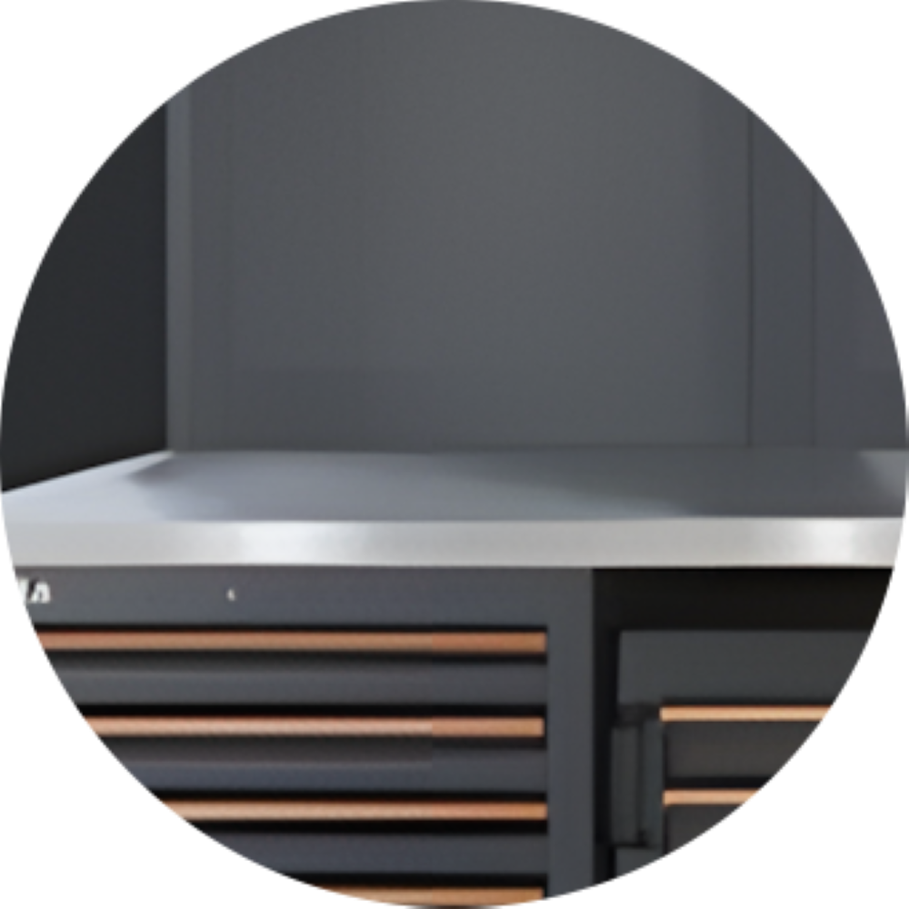 Tampo de bancada durável e resistente para oficinas e workshops.