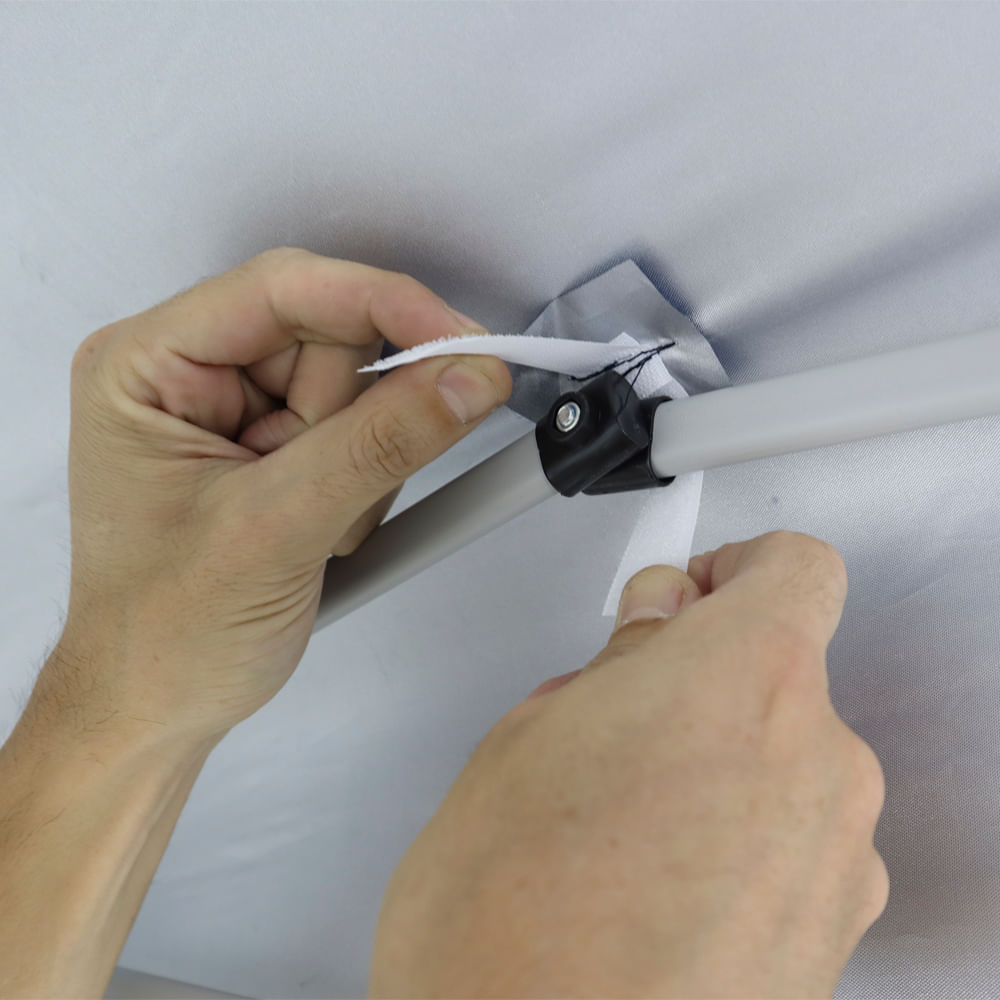 Estrutura metálica para fixação ao solo e cordas para amarração
