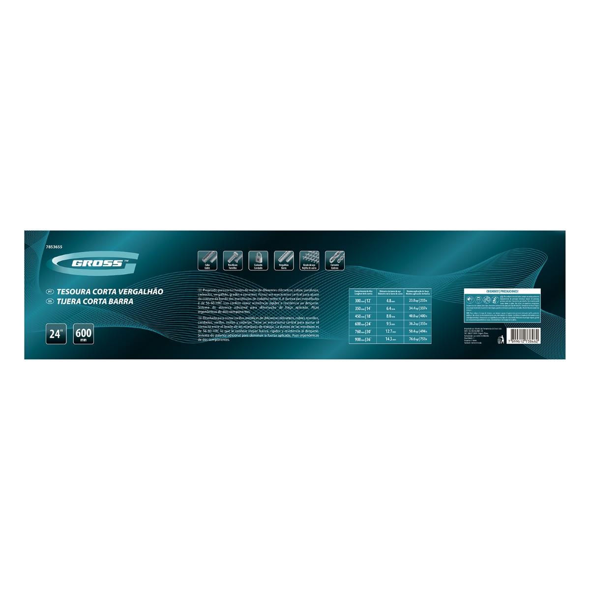 A Tesoura Corta Vergalhão Gross 7853655 redefine a eficiência e a durabilidade no corte de materiais pesados. Com 600mm (24 polegadas) de comprimento, esta ferramenta robusta é projetada para cortar hastes de aço de até 9,5mm de diâmetro, parafusos, cabos e diversos tipos de fios. Fabricada com aço Cr-Mo de alta qualidade, a tesoura oferece resistência e rigidez excepcionais, ideal para os trabalhos mais exigentes. As mandíbulas em aço CrMo garantem resistência superior ao desgaste, mantendo a ferramenta em ótimas condições de uso por muito mais tempo. Sua dureza, entre 56 e 60 HRC, permite trabalhar com materiais de alta resistência, assegurando cortes precisos e eficientes. A alavanca adicional integrada reduz o esforço necessário para o corte, proporcionando maior conforto e evitando a fadiga, mesmo em trabalhos prolongados. O mecanismo excêntrico permite um ajuste fino das mandíbulas, garantindo alinhamento perfeito e minimizando o desgaste irregular. As alças ergonômicas proporcionam um manuseio confortável e seguro, adaptando-se perfeitamente às mãos do usuário. Esta tesoura é a escolha ideal para profissionais da construção civil, mecânicos e entusiastas do 'faça você mesmo' que precisam de uma ferramenta confiável e de alto desempenho para cortes pesados.