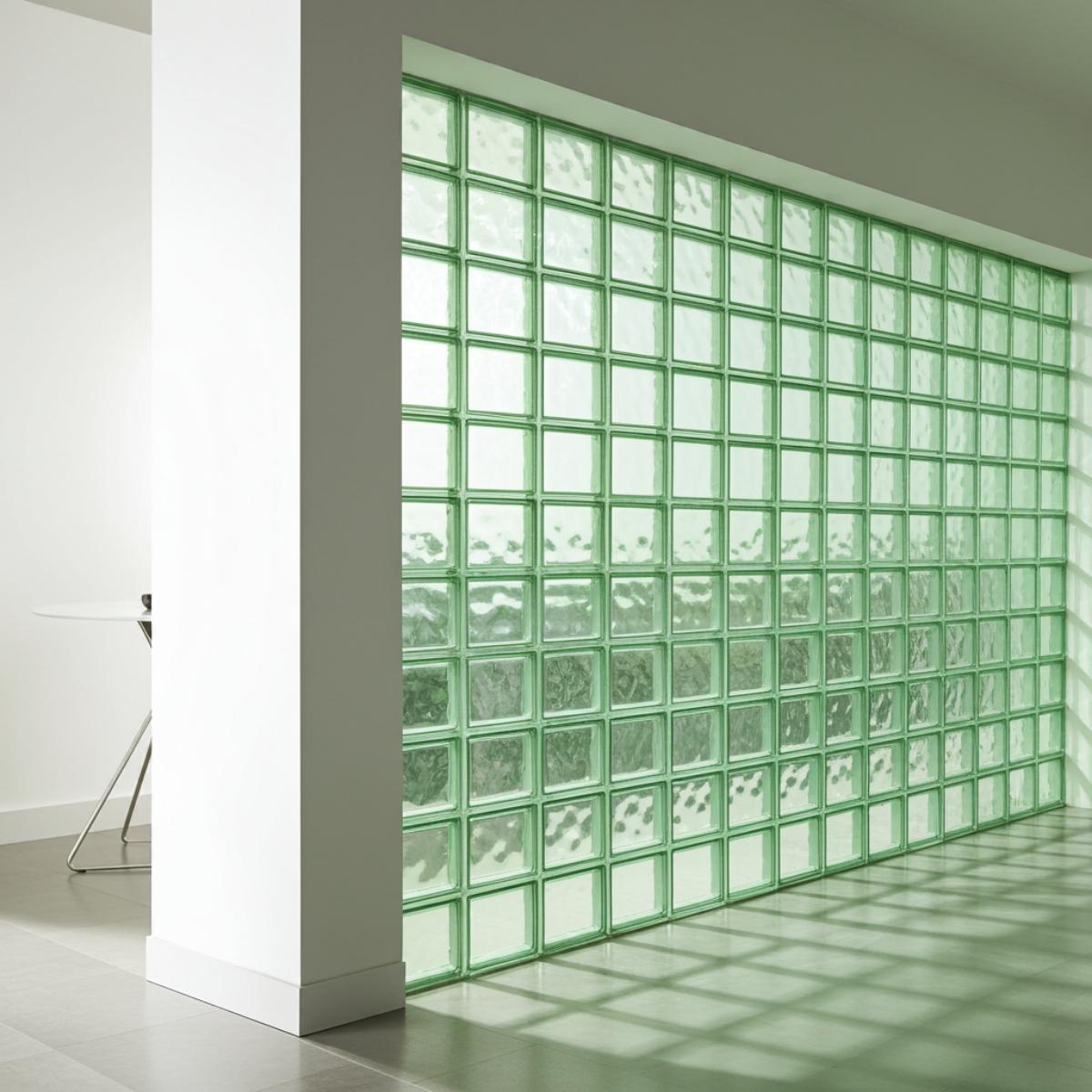 - 06 Tijolos de Vidro 19 x 19 x 8 cm Cloudy S-Color Green Tradestar